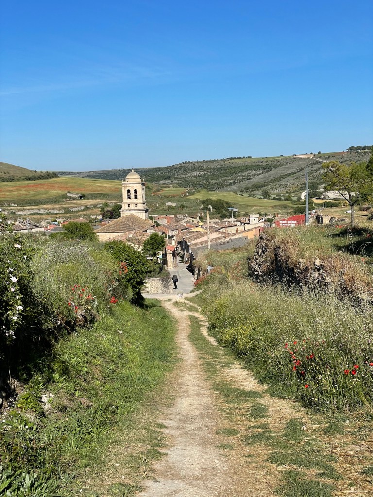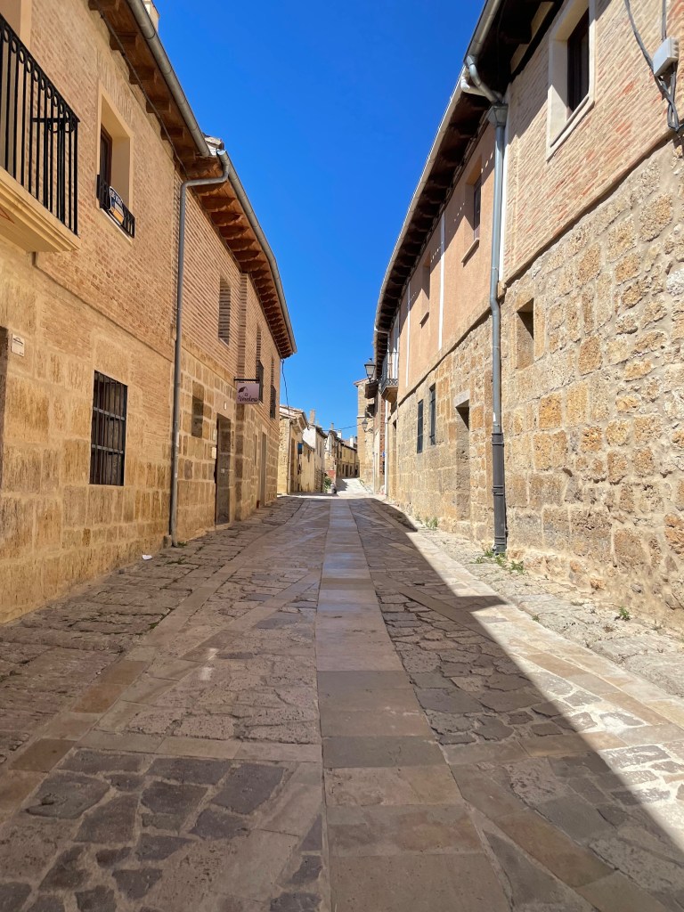 Despierto a las 7 a.m. Desayunamos y partimos junto a Argos. El plan de hoy es pedalear 45 kilómetros hasta Frómista. No soy un ser mañanero, así que arranco lento. El sol recién está saliendo y hace algo de frío. El camino comienza con una subida, algo que luego aprendería que es habitual al salir de un pueblo, así como las bajadas antes de llegar.