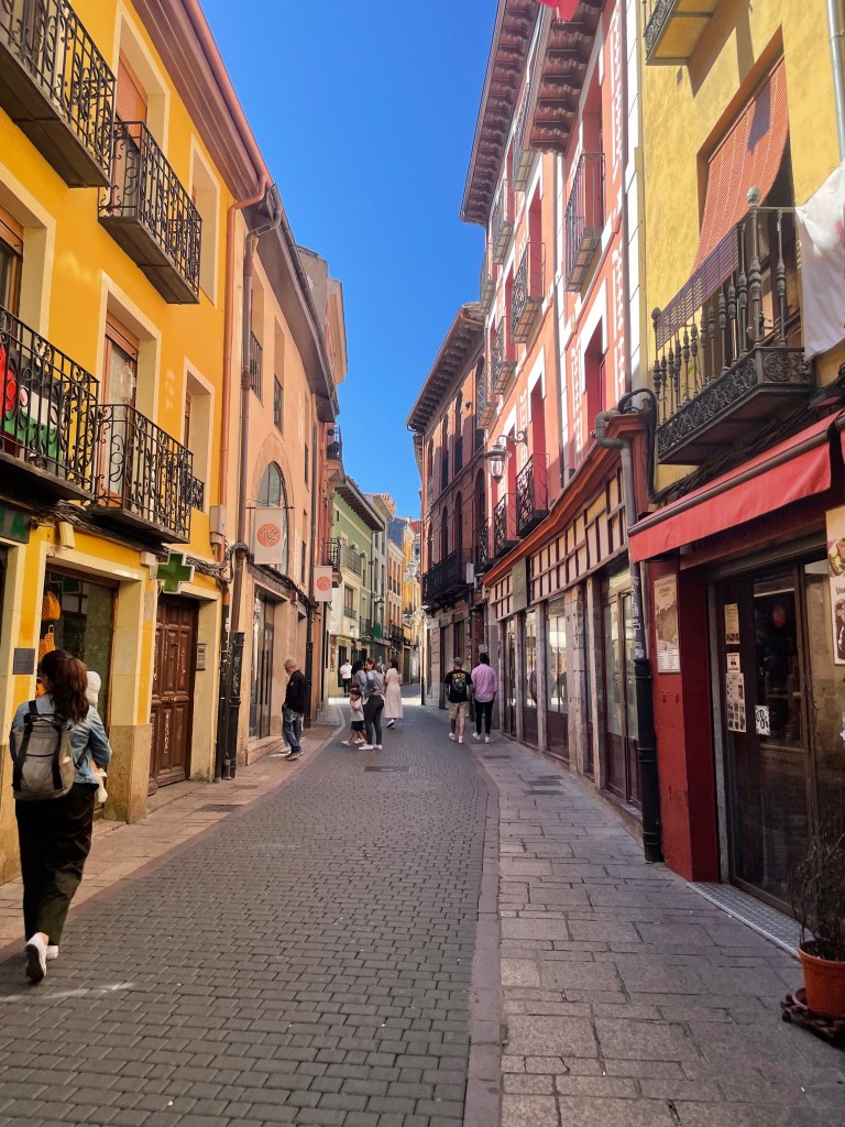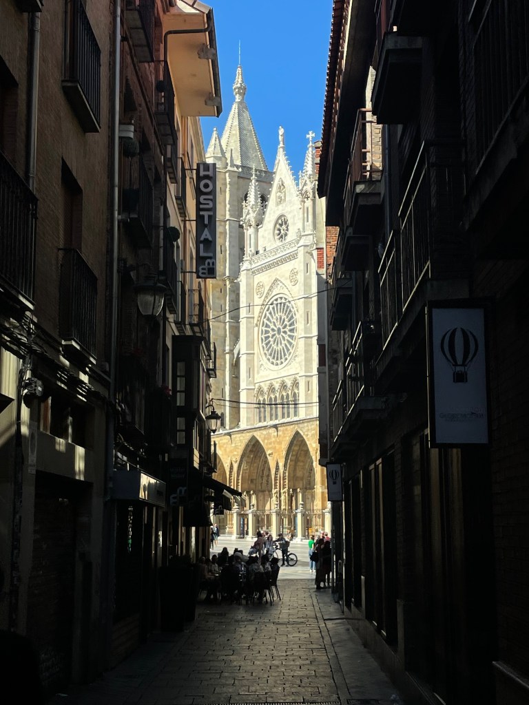 Después de lavar la ropa, salimos a explorar el corazón histórico de la ciudad con Argos. Mientras paseamos por sus calles estrechas y adoquinadas, él me recomienda visitar la catedral de León. Decido echarle un vistazo, mientras él prefiere quedarse en una taberna para ver el partido de la Eurocopa.