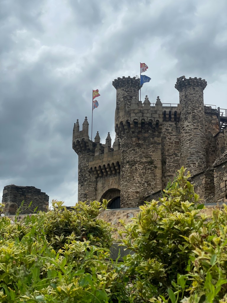 Ponferrada, la ciudad de los templarios. Nos quedamos en un hotel con garaje para bicicletas en el sótano. La habitación es cómoda. Me ducho y salgo a pasear por la ciudad. El cielo está nublado y hay poca gente en las calles. Visito el castillo templario, camino por el casco viejo mientras escucho música medieval en el celular.